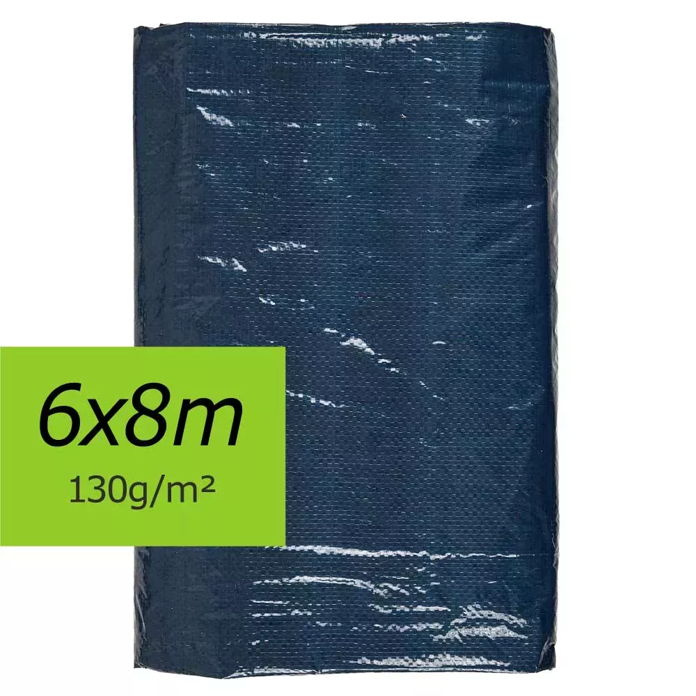 Vendue à l'unité, une bâches 6x8 m avec œillets traités antirouille, en polypropylène tissé enduit 2 faces polyéthylène noir 130g/m², soudure à chaud, imperméable, imputrescible et anti moisissure, résiste au gel (– 30°C), et à la chaleur (+ 70°C).
