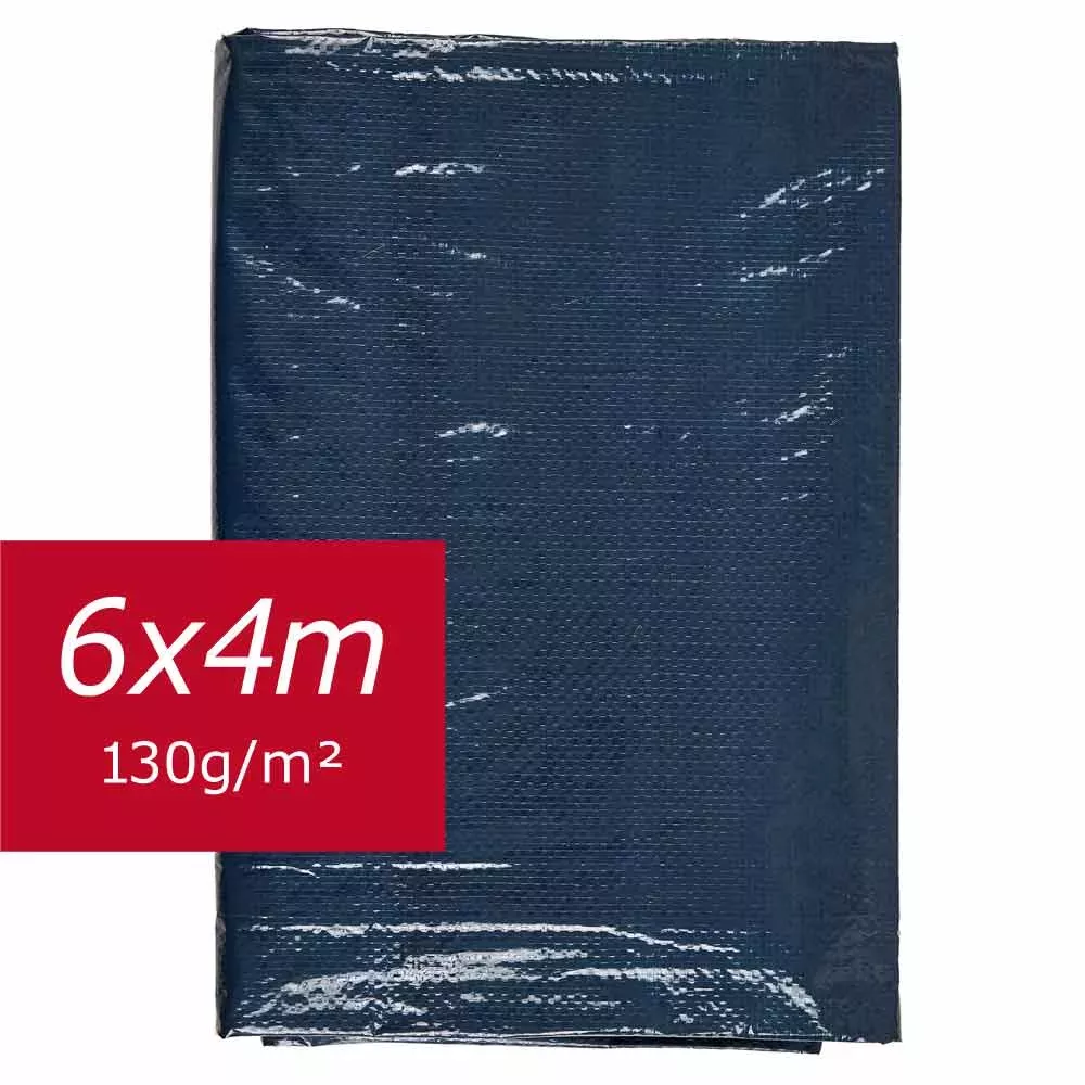 Vendue à l'unité et en gros volume de 2 bâches 6x4 m avec œillets traités antirouille, en polypropylène tissé enduit polyéthylène vert et bleu 130g/m², soudure à chaud, imperméable, imputrescible et anti moisissure, résiste au gel (– 30°C), et à la chaleur (+ 70°C).
