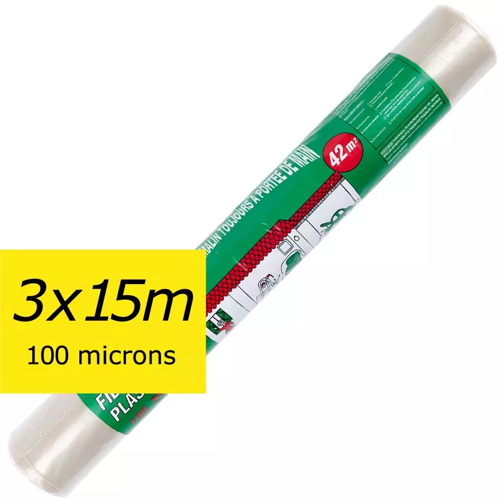Vendu à l'unité et à prix de gros, 6 rouleaux de film rigide , qui se déplient pour atteindre une largeur de 3 mètres (L: 4x75 cm), longueur 15 mètres, en polyéthylène PELD en fine épaisseur (100 microns).