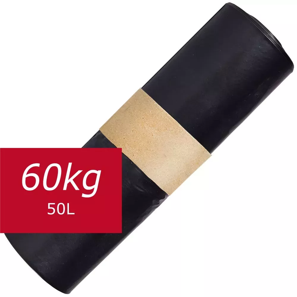 Rouleau vendu à l'unité (10 sacs), et à prix de gros de 20 rouleaux de 10, levée de charge 60 kg, polyéthylène basse densité, couleur noir, dimensions: 60 × 100 cm, épaisseur: 120 microns.